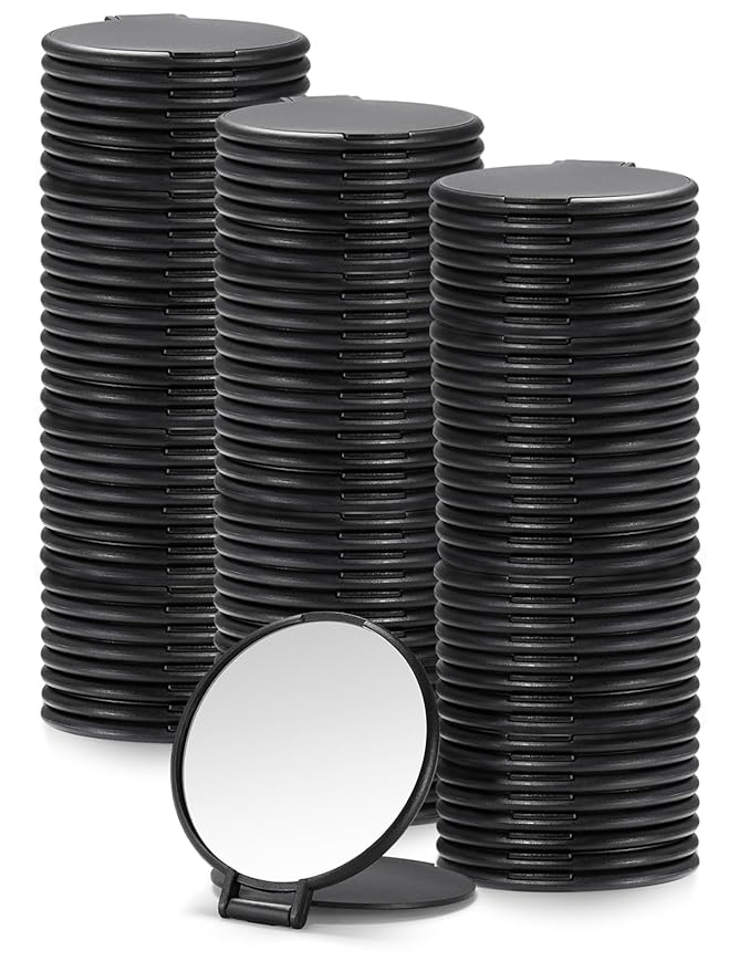 This small compact mirror is quite handy - one can be placed in your purse, backpack, near your computer, or other convenient location. The 'top' turns into a 'stand' so your hands are free for applying or adjusting makeup as an example. Recommended.