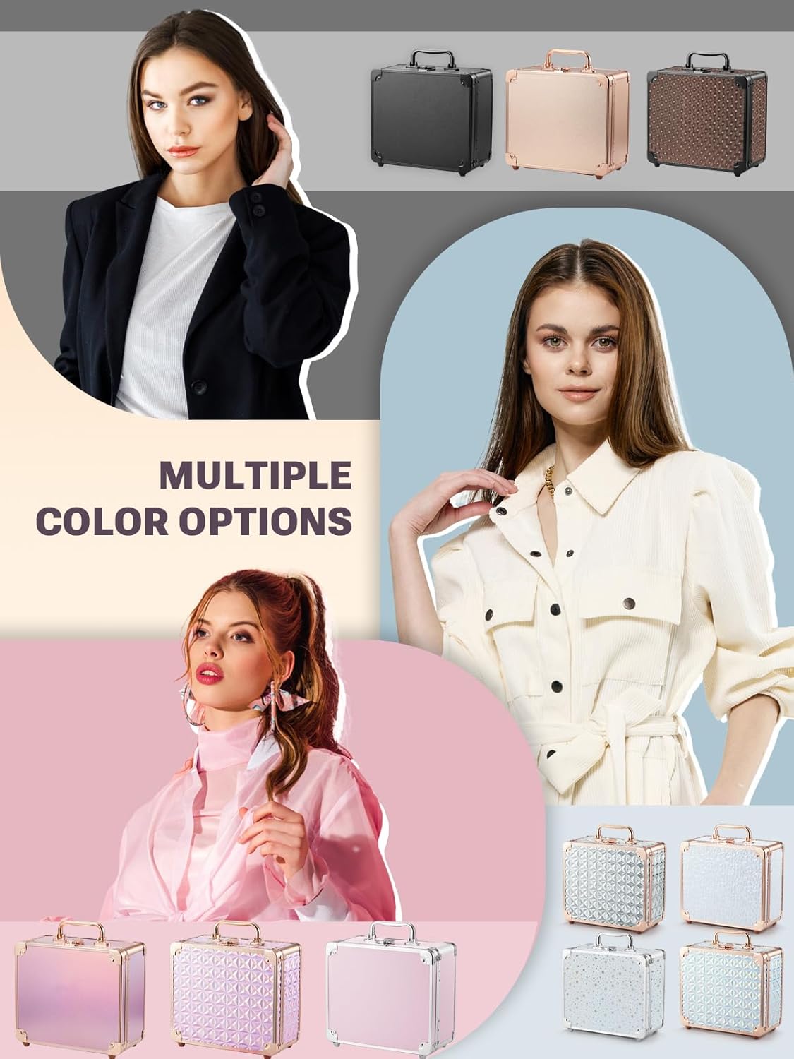 Great designer-looking makeup for use as carry-on or vanity bag. It holds everything my foundation, eyeshadow palettes, lip glosses, lip sticks, mascaras, brow stash, eye cream, everything. It is as functional as it is beautiful. The mirror is the perfect size and even my weak eyes can see every hair in my brow so I use the mirror to pluck my eyebrows. The finish seems stain and scratch resistant.