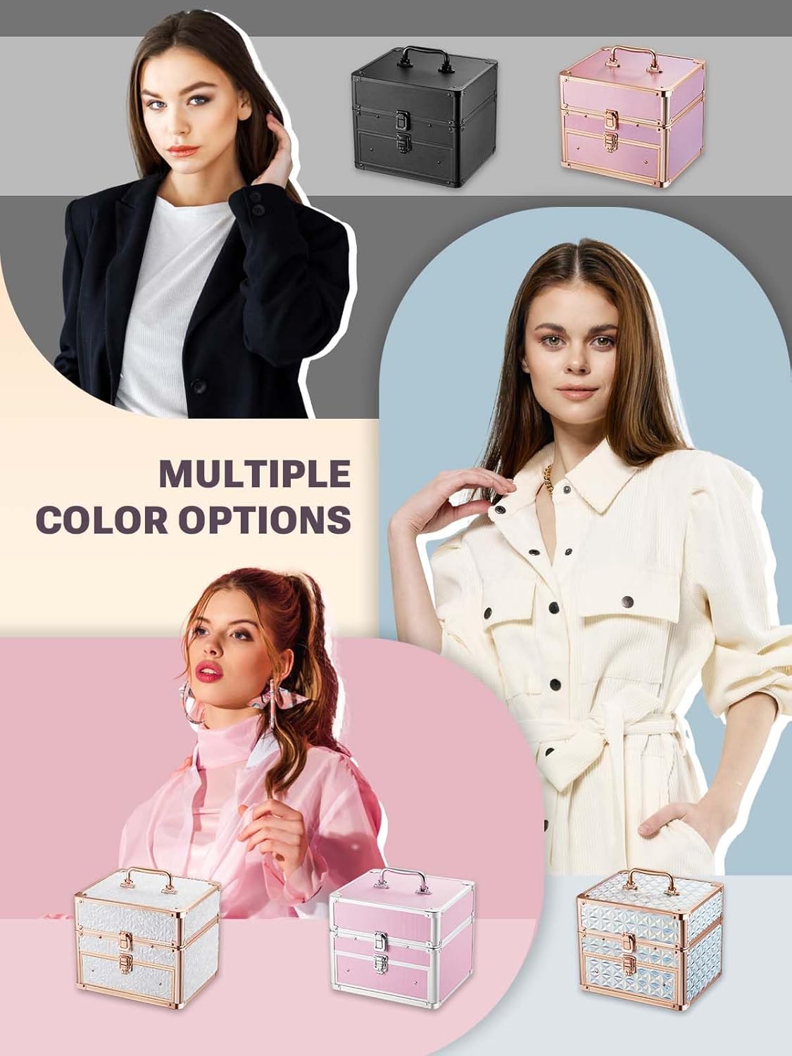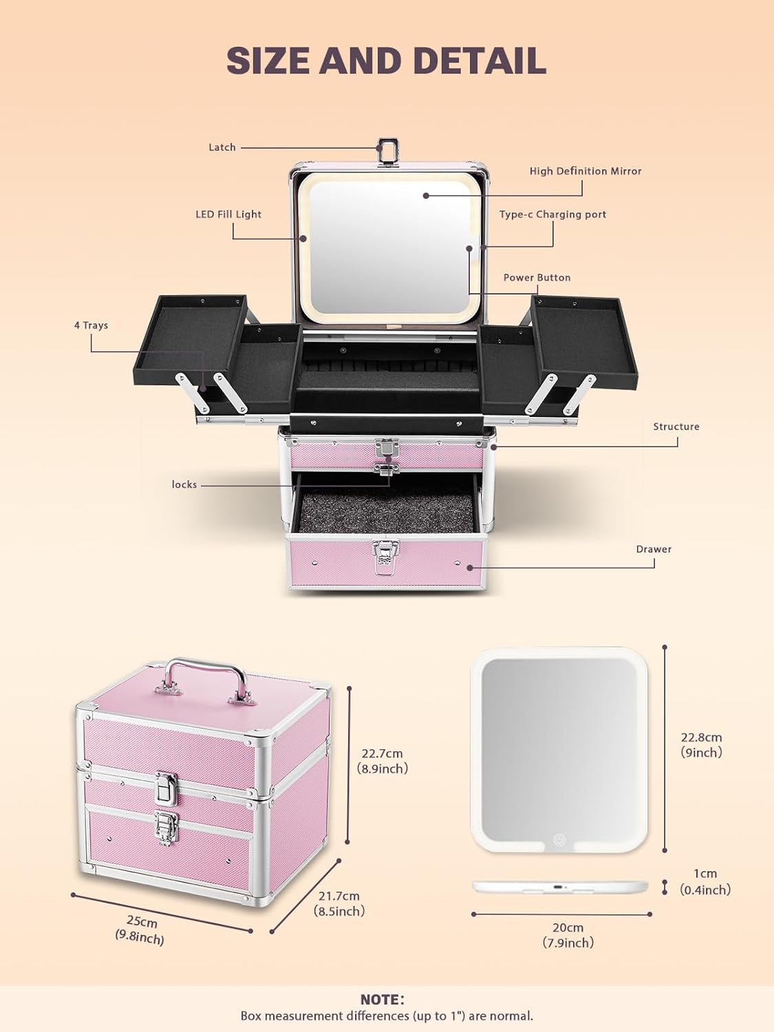 Multifunctional Makeup Organizer: This makeup case organizer features 4 slide-out cantilever trays, and a detachable magnetic mirror and 1 drawer for customizable storage. And 5 different colors are available, choose the favorite for yourself or your loved one